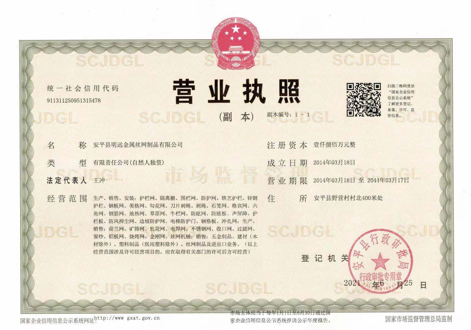 明遠(yuǎn)圍欄 · 10年榮譽(yù)證書國(guó)際先進(jìn)的工藝技術(shù)及生產(chǎn)加工設(shè)備