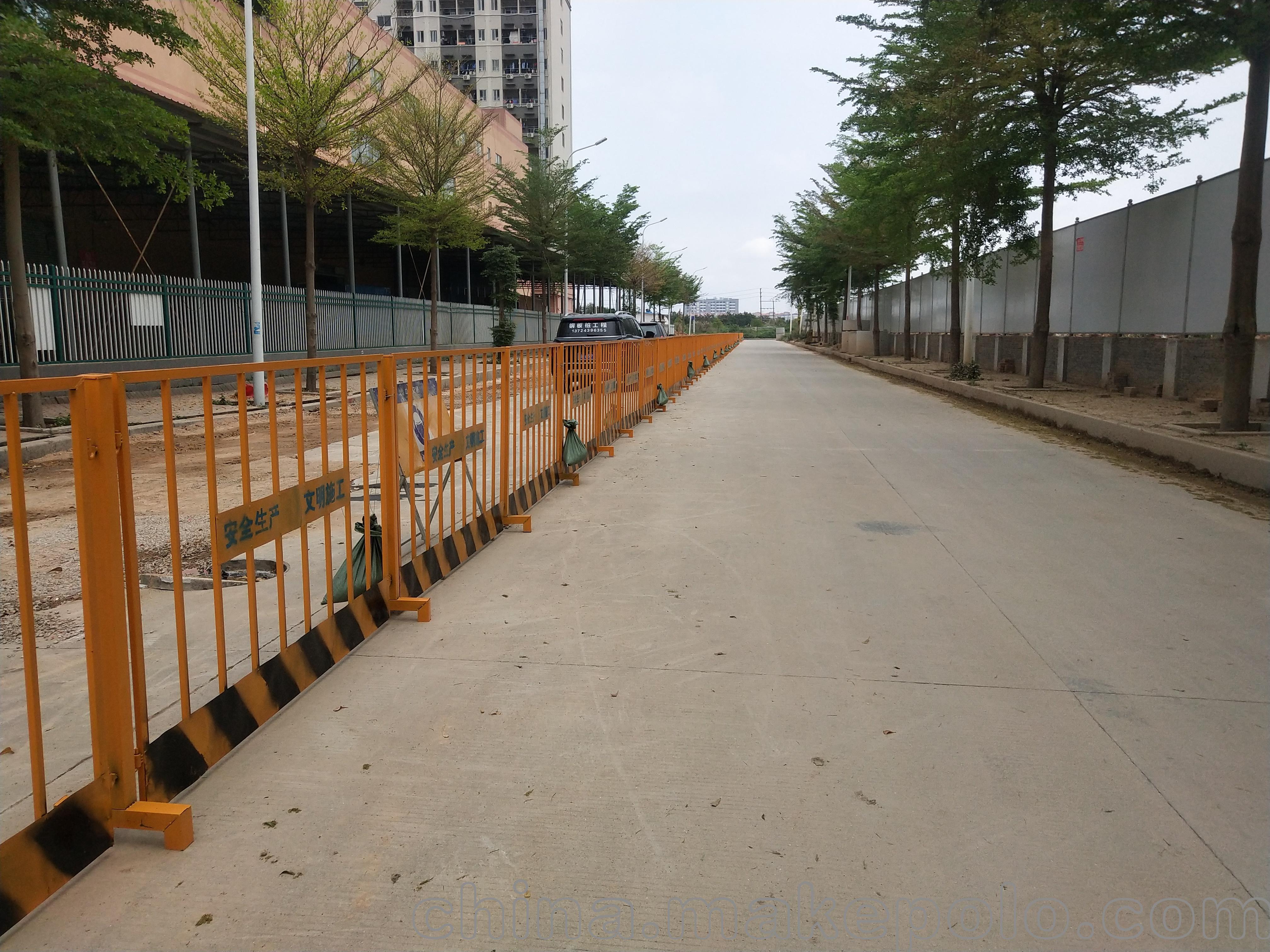 2、應由橫桿及立桿組成。橫桿應設2~3道,下桿離地高度宜為0.3 m~0.6m,上桿離地高度宜為1.2 m~1.5m;立桿間距不宜大于2.0m,立桿離坡邊距離宜大于0.5m;