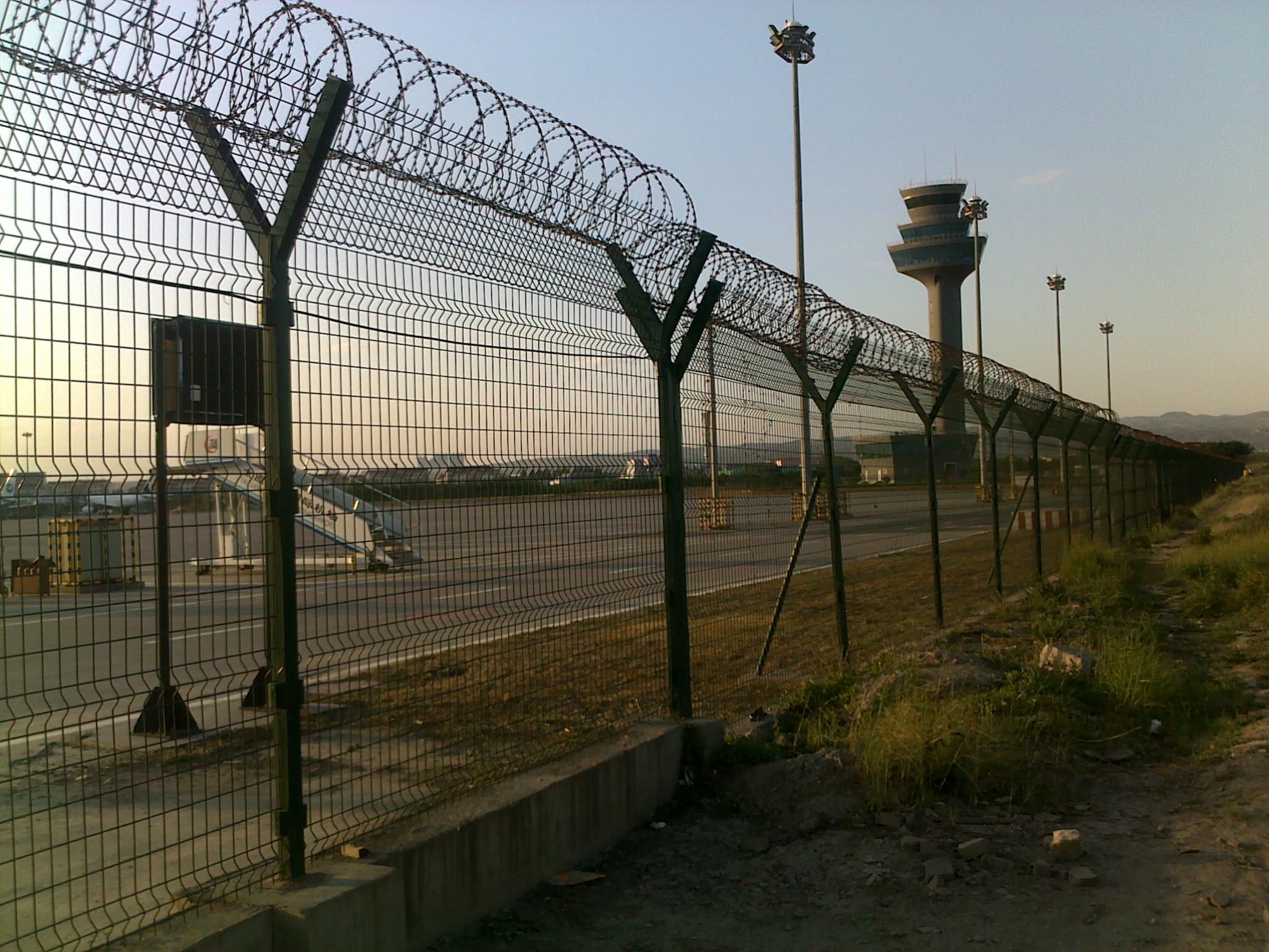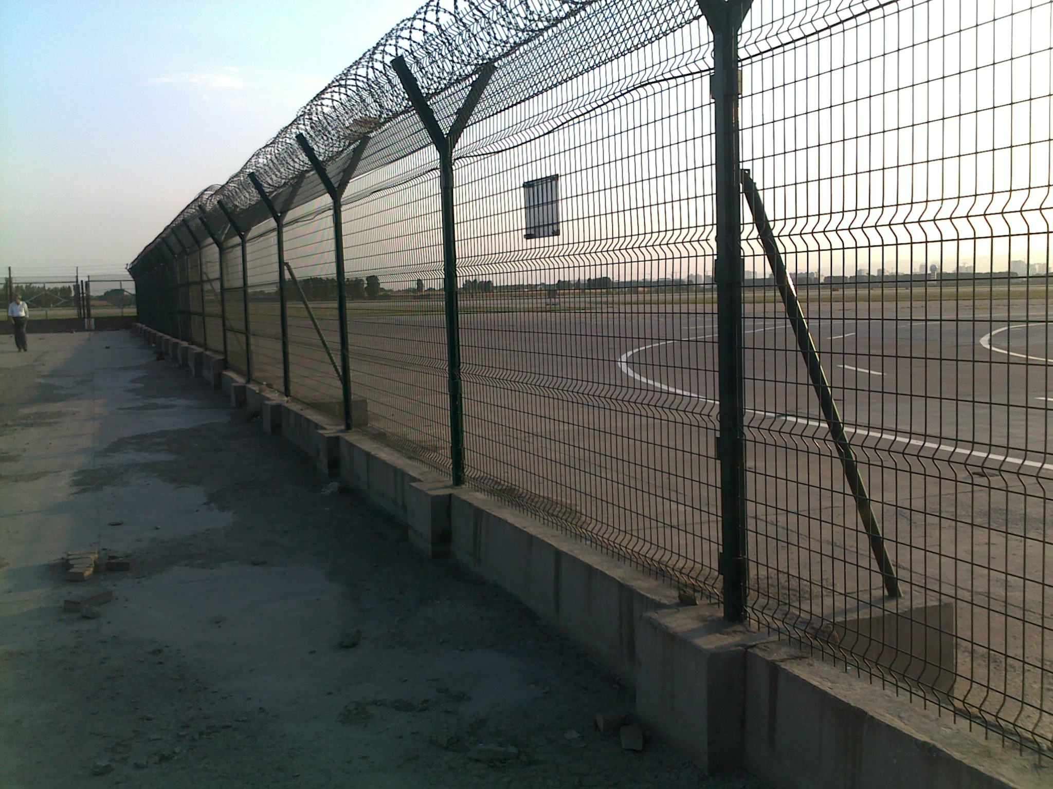 機場護欄網又稱作“Y型安全防御護網”,是由V型支架立柱加強型焊接片網,安全防盜連接件和熱鍍鋅刀片刺網組成強度和安全防御性級別很高。被廣泛應用在機場,軍事基地等高安全場所。