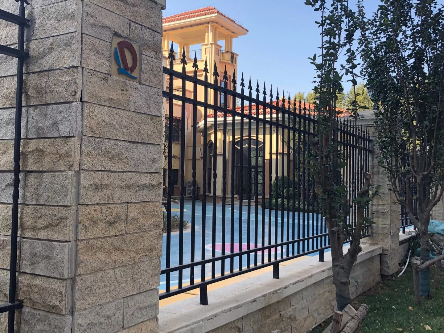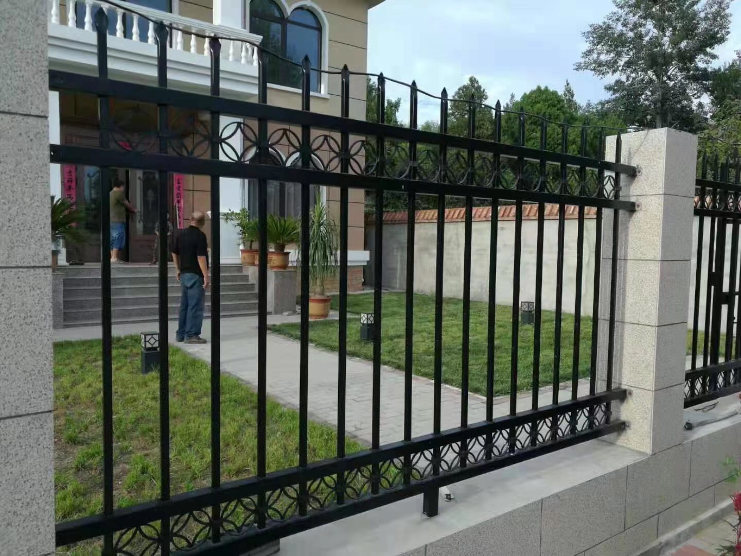 四根橫梁就是為了安裝裝飾花而設計的。鐵藝圍欄四橫梁兼顧了其他柵欄的防盜性能,藝術圍欄的美觀效果。D型柵欄被別墅小區的建設廣泛采用。建筑商在為別墅小區和高檔住宅區進行圍墻設計的時候,最多的選擇了帶裝飾花的柵欄。